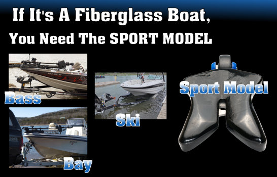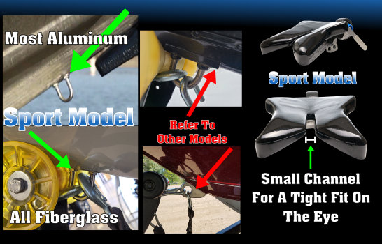The Sport Model is designed specifically to work with a boat that has a standard U Bolt mounted directly to the boat and no thick brackets above it. The Sport Model is for ALL FIBERGLASS BOATS and a LARGE percentage of aluminum compatible boats. It mounts on a 3′ – 4.5″ wide roller bracket. The polyurethane is engineered to fit snug around the eye of the boat and create the tightest fit between your eye and your boat. When you create a tight fit this allows the least amount of play when loading and traveling. This is extremely important when it comes to fiberglass boats. You do NOT want a loose fit or it will create pressure points or damaging wear points on the fiberglass. Our design helps to combat this issue and protect your boat.
