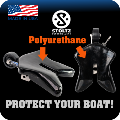 The Ramp N Clamp cover is made up of an upgraded Stoltz Polyurethane to prevent damage to your boat. Stoltz has been known around the world for its superior super boat trailer rollers material and we have upgraded it to an even stronger more resistant protector. 10 times more durable than plastic. Here are key notes to consider about Stoltz Poly.